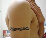 タトゥーシール/トライバル・601BW[メール便発送] [5,250円以上送料無料] 価格: 504円 レビュー評価: レビュー数: 遊び心から作られた今迄にない本格派タトゥーシール。超セクシーなワンポイントアートです。ヘヴンオリジナル取り付け方説明書付きです。1.貼り付ける部分の汚れや油分をよく拭き取ります。 2.透明の保護シートを剥がし、絵柄面を貼り付けたい部分に貼り付けます。 3.絵柄の反対面の紙シート部分に、適量の水を浸します。 4.そのまま約2〜3分経った後、紙シートを剥がします。 5.強力接着剤を使用している為、貼り付けた絵柄部分にもう一度水をかけることによって接着剤を取り落とすと共に接着効果が増します。 6.剥がす時は、アルコール成分で拭き取るか、お湯の中に浸したまま強く擦ると取れ |